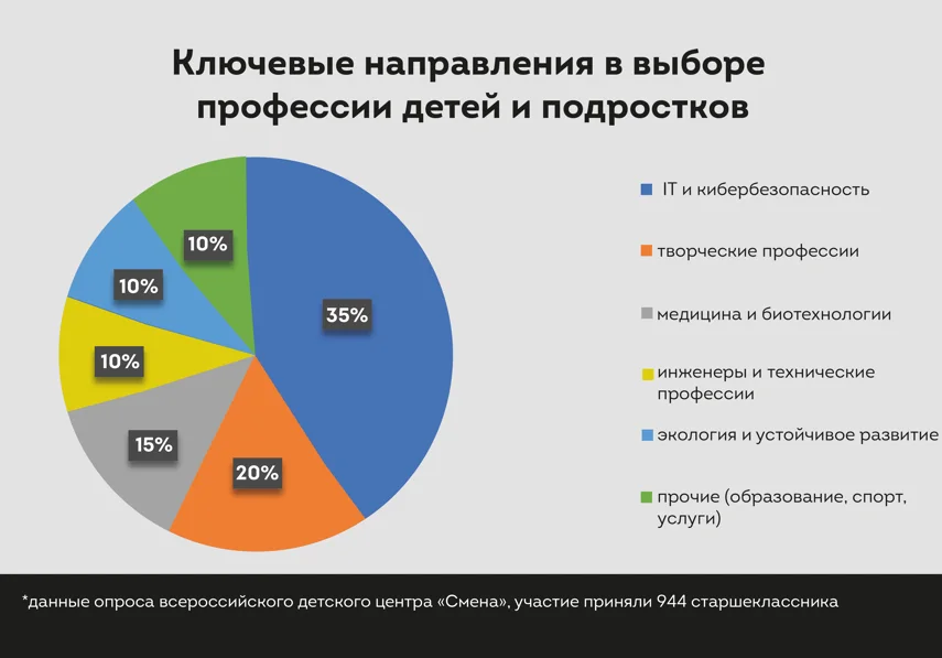 Выбор профессии детьми – важная тема не только для самого ребенка и родителей, но и для общества, поскольку от этого зависит будущее страны. С тех пор, когда дети мечтали стать космонавтами, учителями и пожарными, произошла кардинальная трансформация карьерных мечтаний. IT, digital и блогерство предлагают больше возможностей. Какие профессии и сферы деятельности интересуют детей и как они их выбирают, давайте разбираться.