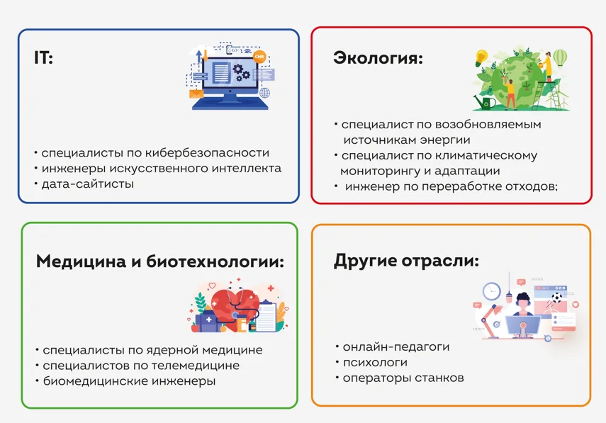 Цифровые технологии влияют на все сферы деятельности и постоянно меняют как рынок труда, так и взгляды детей на профессии. Поэтому IT безоговорочно лидирует в этом списке, а еще все больше внедряется в другие отрасли. Так, например, врачи «уходят» в телемедицину, педагоги – в онлайн-обучение, а работники промышленных предприятий вместо ручных станков управляют современным оборудованием.