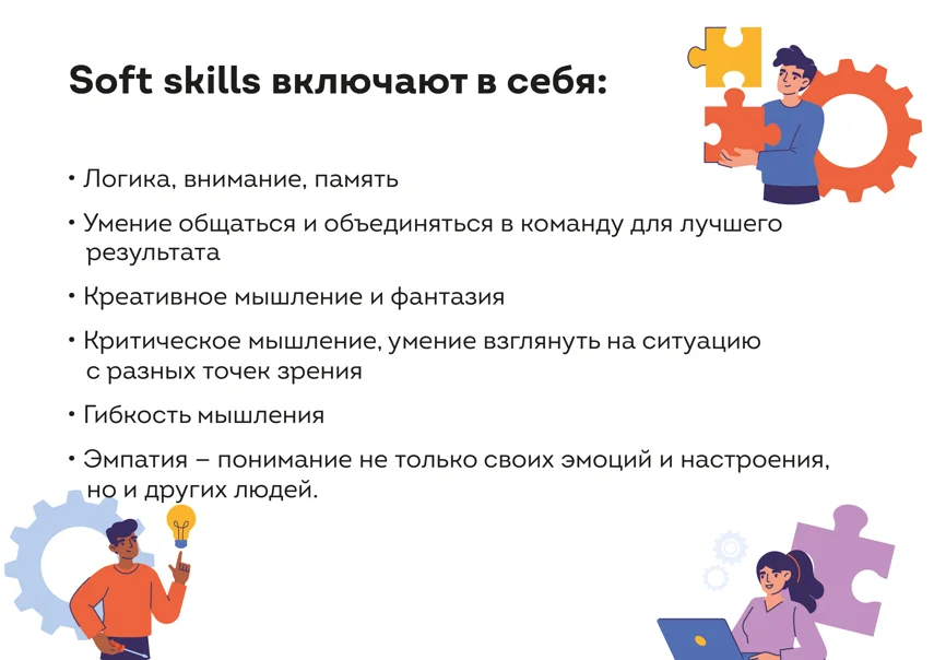 Кроме этого, родители понимают, что кроме профессии необходимо подготовить ребенка к взрослой жизни, сформировав у него важные жизненные навыки, например, способность идти к цели или отстоять себя в спорной ситуации. Поэтому они уделяют особое внимание «гибким (мягким) навыкам» — soft skills.
